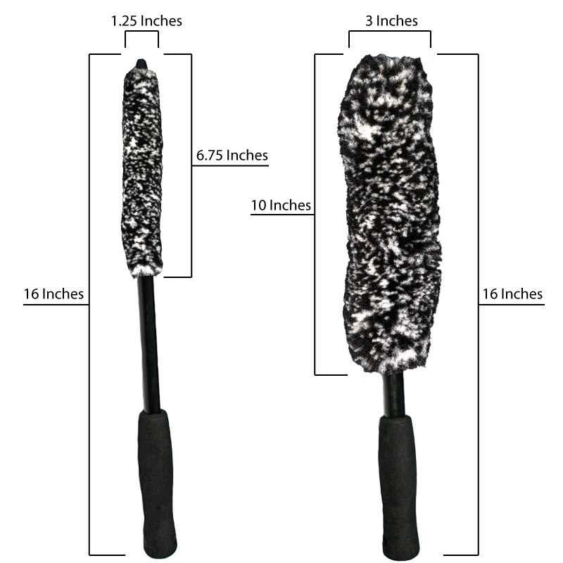 Instead of tough plastic that will scratch your wheels like other brushes, ours are made of a soft carpet wool and have rubber tips to make sure your wheels are never harmed in the cleaning process.