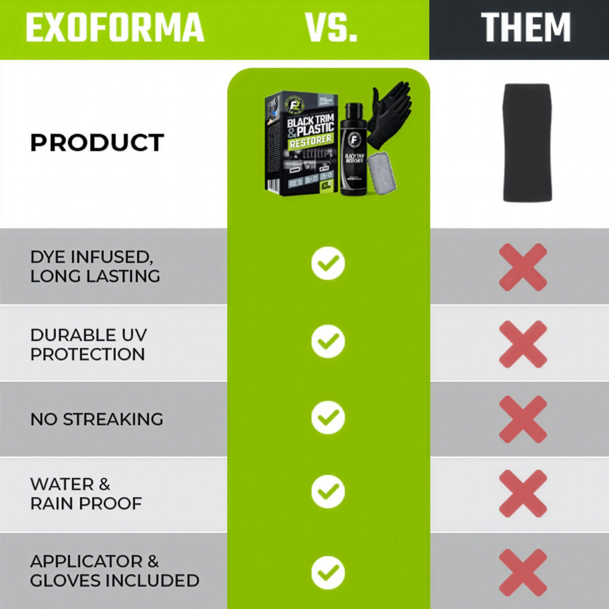 Unlike other products, ExoForma Trim Restorer contains dyes that penetrate deep into the trim.