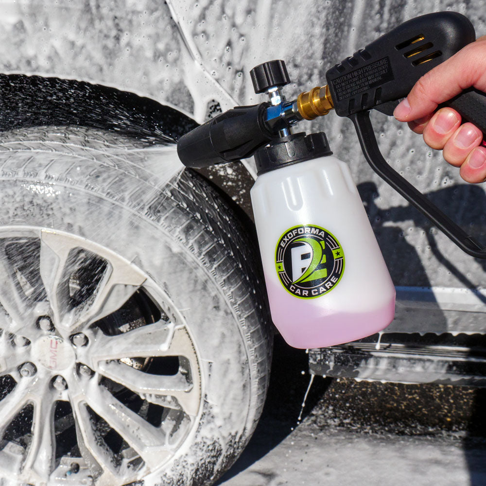 ExoForma's Foam Cannon blankets your car in thick, luxurious foam for a gentle, scratch-free wash that helps lifts away dirt and grime. (Requires a pressure washer)